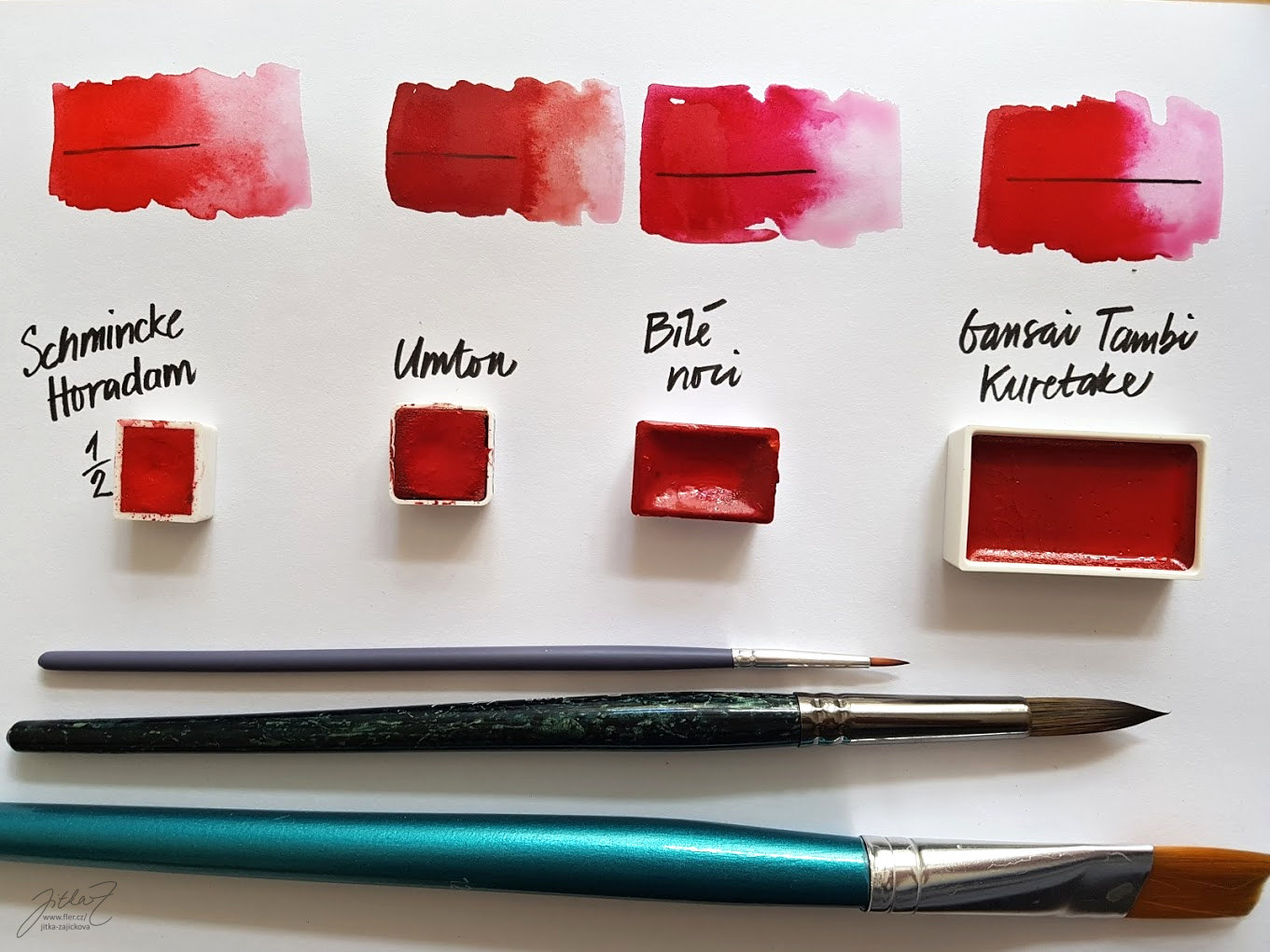 Škála barev je kouzelná, já mám v oblibě zejména modré a tyrkysové odstíny. Srovnatelný tyrkysový odstín jsem zatím našla jen u Schmincke Horadam. V sadách jsou hojně zastoupeny červené a zelené odstíny, což odpovídá tradici sumie.